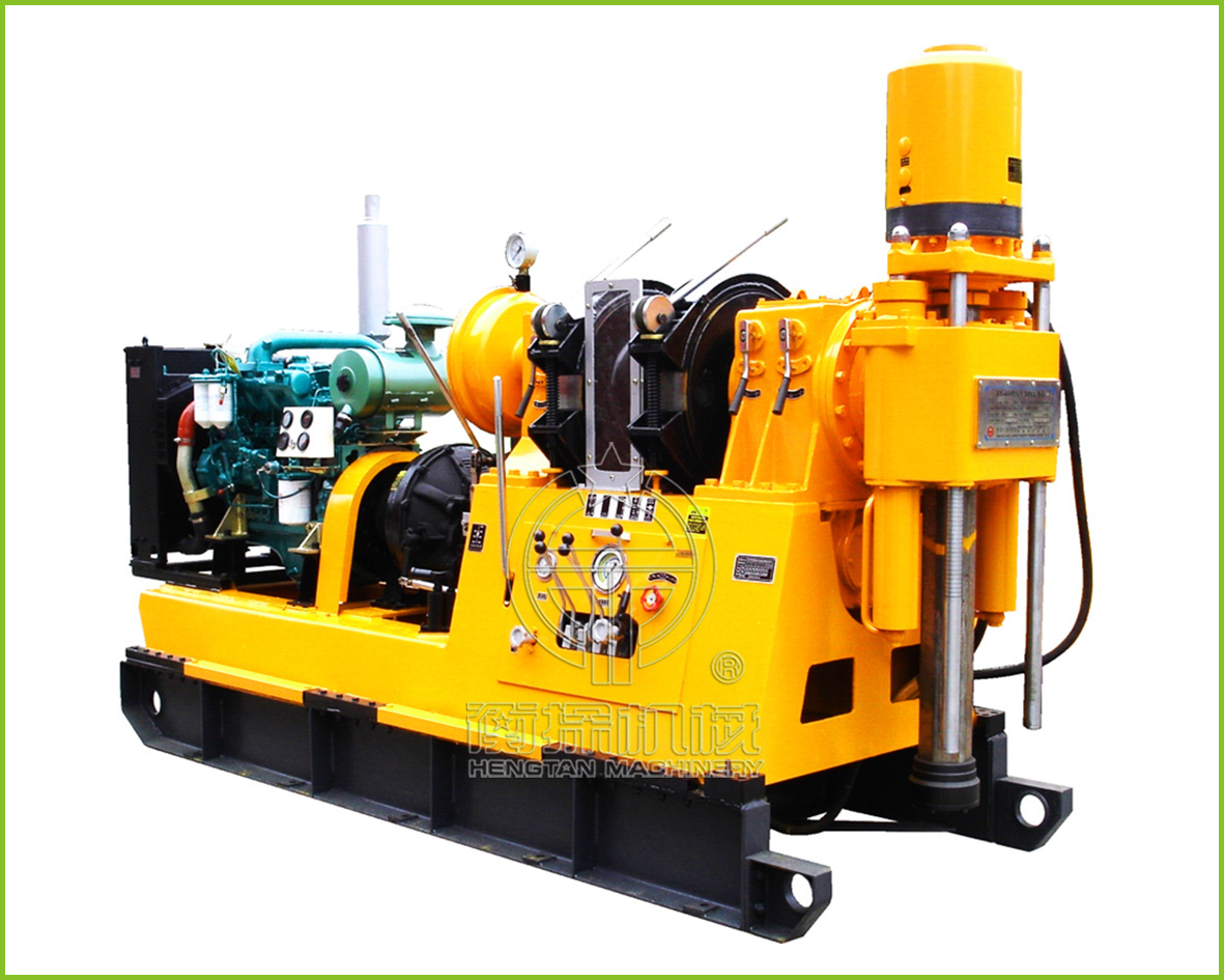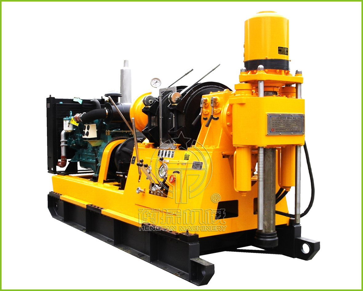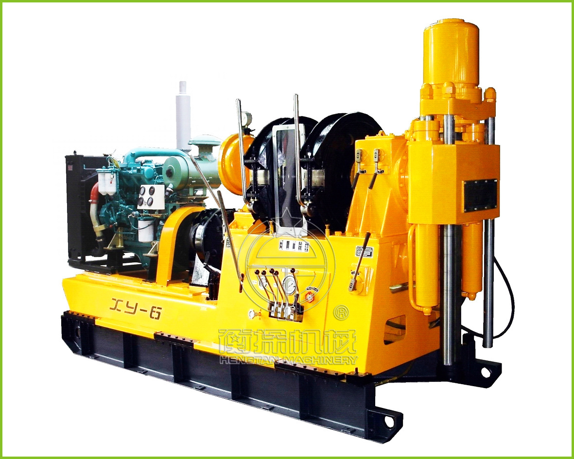 机械传动立轴式岩心钻机是一种通过齿轮传动驱动立轴旋转的地质勘探设备,主要用于固体矿产取心勘探施工。其核心结构包括立轴、变速箱、卷扬机和给进机构,依靠机械传动实现钻杆旋转,通过液压油缸实现轴向加压,具有结构简单、维护方便、成本较低、起拔能力强的优势,仍广泛应用于矿产勘查、工程地质勘察等领域,尤其适合中深孔复杂地层岩心钻探作业。