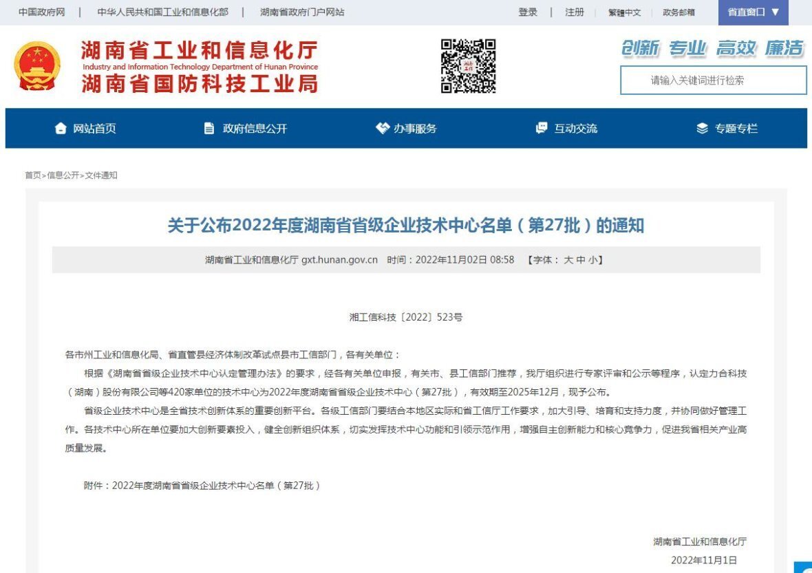 衡探获评2022年度湖南省省级企业技术中心